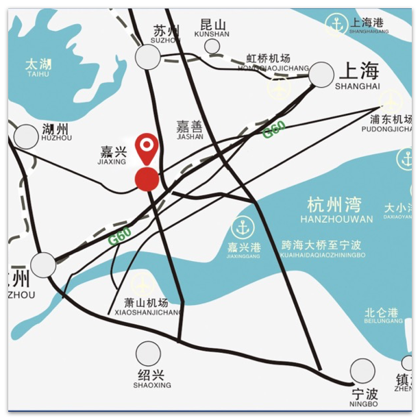 located in the central city cluster of the Yangtze River Delta, only 1 hour drive from Shanghai, Hangzhou, Suzhou and other cities.Proximity to sea and air ports reduces logistics costs.