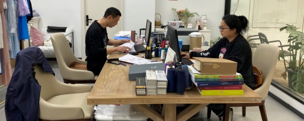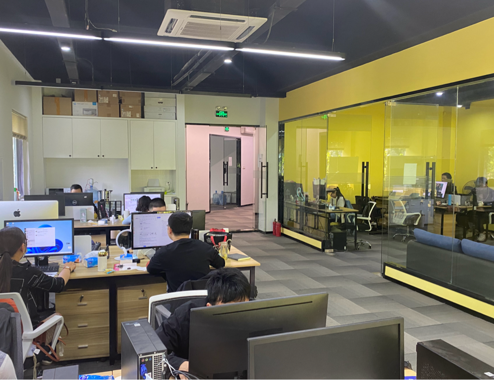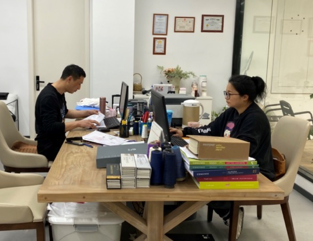 Each team of the company has a relatively independent work place.The headquarters is mainly composed of international trade business team, independent edition room and QC team to work centrally, dealing with the related business from receiving orders, finding surface accessories, making samples to the pre - production meeting(the production technical meeting attended by various departments before mass production to determine the process of mass production)