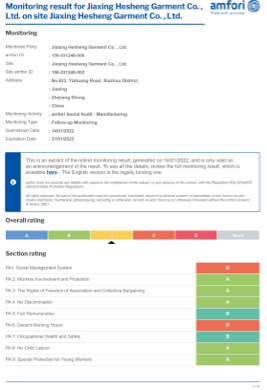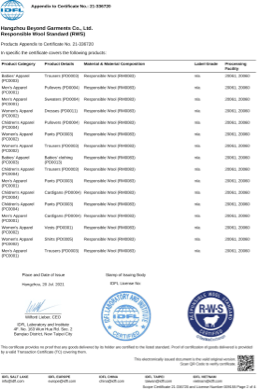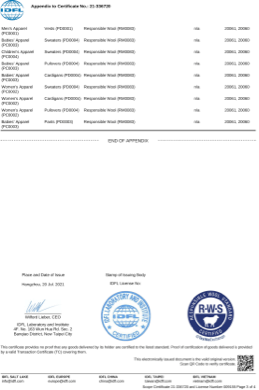 - GRS certification, in line with the five requirements of traceability, environmental protection (Environmental), social responsibility (Social), recycling label (Label) and general principles (General).
